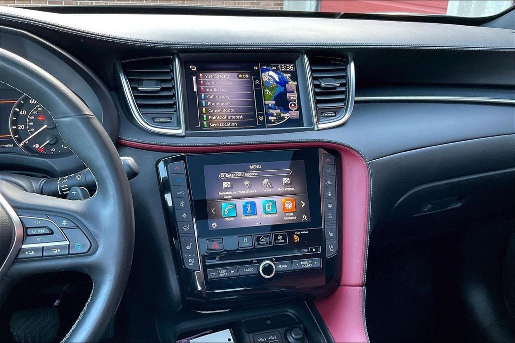 - Radio: Bose Premium Audio System -inc: 12 speakers, metallic speaker grilles on tweeters, INFINITI InTouch, INFINITI InTouch services, INFINITI InTouch dual display system w/upper 8" and lower 7" HD touch screens, wireless Apple CarPlay, Android Auto, HD radio technology, SiriusXM radio w/advanced audio features and 90-day complimentary trial, INFINITI voice recognition, Siri Eyes Free, Wi-Fi hotspot, active noise cancellation, navigation w/3D building graphics, 5 year complimentary access to premium traffic and MapCare, SiriusXM Traffic w/3 month complimentary trial access to real-time traffic information and SiriusXM Travel Link w/3 month complimentary trial access to weather, fuel prices, stock prices, sport scores, movie listings and parking