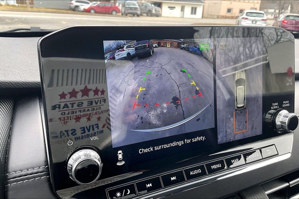 - Radio: AM/FM 9.0" Navigation w/Smartphone Link -inc: 6 speakers, Apple CarPlay, Google Android Auto, SXM all-access and SXM traffic and travel link w/90-day subscription, Mitsubishi Connect, HD Radio, Bluetooth® wireless technology, steering wheel controls for phone, audio and voice recognition and USB ports